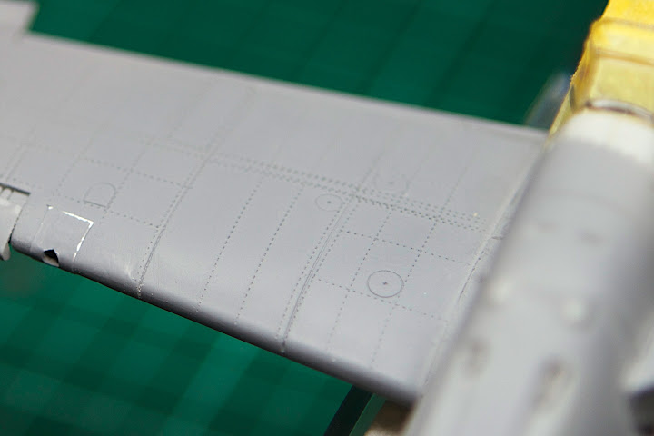 Фюзеляж (вот-те крест!) реально собрался на щелчке, причем кокпит вставился в пазы, половинки совмещаются по ПАЗам и клик! - плотно соединились! Крылья после склеивания половиноК также с щелчком и также плотно встают в фюзеляж. Я читал на западных форумах что так было у всех. Небольшая проблема была только с обтекателями пулеметов на крыльях, но подгоняется быстро.